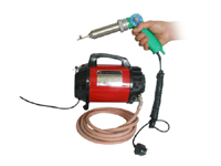 4、調節調溫(調壓)旋鈕與焊槍風量控制閥,一般開至最大(3型無風量控制閥),待熱風熱至能熔融各種塑焊條所需的相應溫度,即可操作。